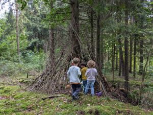Unsere Familiengruppe wanderte am vergangenen Sonntag mit 24 Kindern und 21 Erwachsenenen (unser neuer Rekord) zur Gänskophütte. Zu Beginn bewiesen alle Eltern ihre Kraft und spannten mit einem 70 m Kletterseil ein Netz, um die Kinder über "die Wiese ist Lava" zu transportieren. Durch den Schamusiwald hindurch ging es bergauf und am Ziel verspeisten wir leckeren Kuchen. Unerwartete Überraschungen gab es auch diesmal wieder, als Pferde unser Waldlager streiften. Ein Reiter hatte sogar ein Lasso dabei und jedes mutige Kind durfte sich auf eines der zwei Pferde setzen. Das hat bei 24 Kindern einige Zeit gebraucht. Danke an die zwei unbekannten Cowboys. Als dann auch noch das Jagdhorn ganz wundervoll durch den Wald erklang, amüsierten wir uns sehr über unseren erlebnisreichen Ausflug durch den Schamusiwald.
